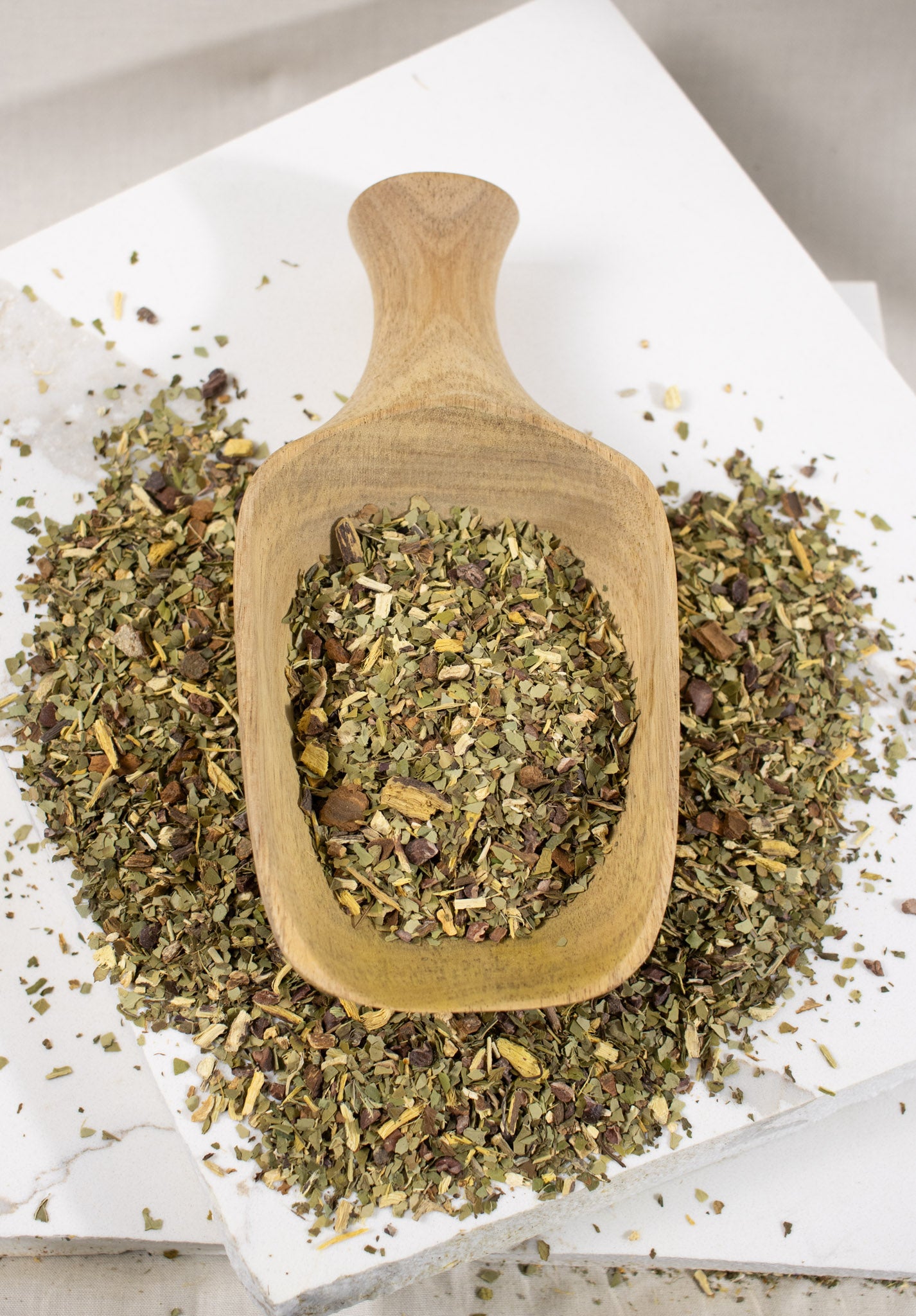 The synergy of Yerba Mate and Cacao Nibs creates a balanced, smooth energy source that awakens without overstimulation. Licorice Root and Cinnamon Chips support adrenal health and add warmth, while Ginger Root and Peppermint Leaf bring a refreshing zing that helps promote healthy digestion and revitalization throughout the day.