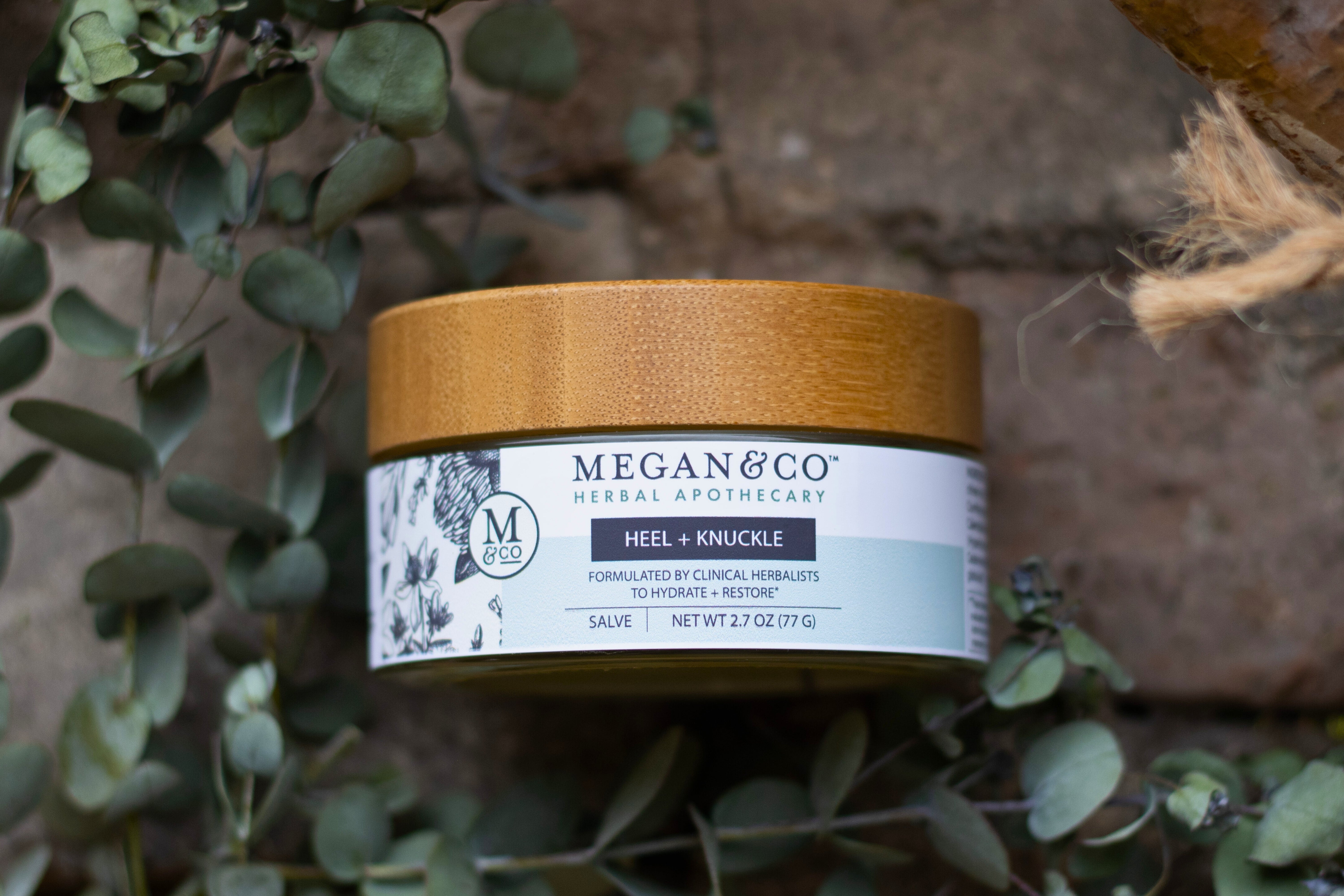 Heel + Knuckle Herbal Salve is a rich, restorative botanical salve formulated to support dry, overworked skin in areas that need it most.*
