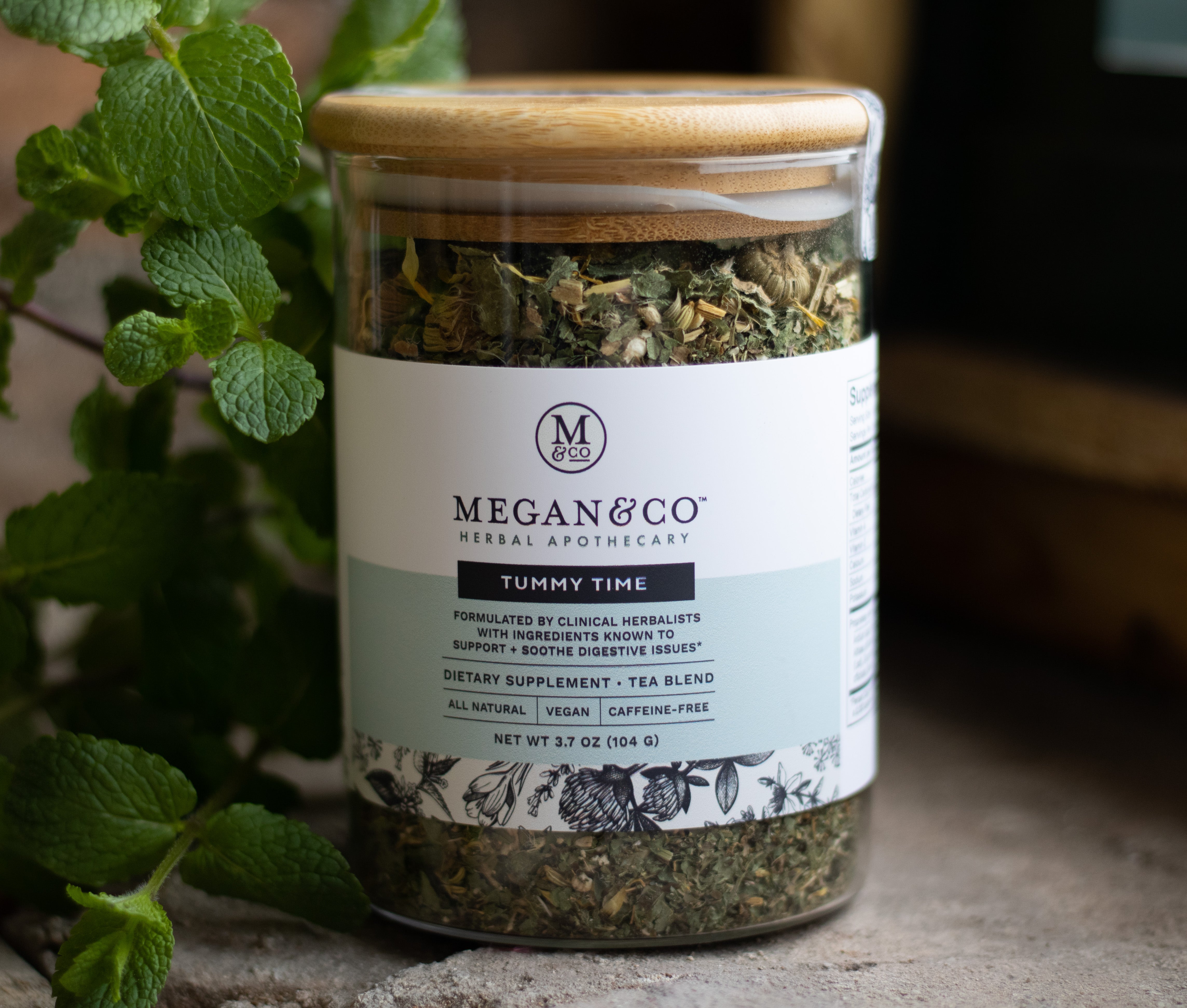 Tummy Time, Tea Blend (Glass Jar 104g): Rebuild + Soothe